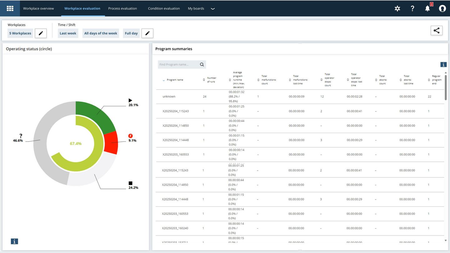 Smart View provides you with an overview of the initial operation data of your TRUMPF machines. With the purchase of additional software products and data-based services from TRUMPF, your view in Smart View will automatically expand to provide additional functions and deeper insights. Find further details on which views are available as standard and how these can be expanded with additional products here.