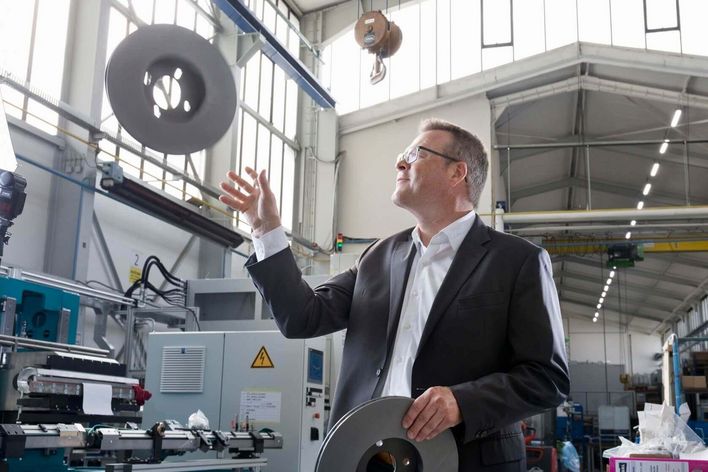 TRUMPF makinelerinin yedek parçaları, bu salonun içinden geçiyor. Yüksek teknoloji şirketinin Ditzingen'deki lojistik merkezinde 85.000 farklı malzeme numarası stoklu durumda. Teslimat süreleri ise, sektörde standartları belirliyor. “Siparişlerin yüzde 85'ini aynı gün kamyonlara yükleyerek ‘aynı gün çıkışlarını’ yapıyoruz. Bu, sac dünyasında başka kimsesinin başarabildiği bir şey değil,” diyor iki yıldır lojistik merkezinden sorumlu olan Oliver Türk. TRUMPF, siparişlerin ortalama yüzde 99'unu planlanan teslimat tarihlerinde hayata geçirebiliyor. “Yüzde 100'e ulaştığımız günlerde ise herkese pizza ısmarlıyorum. Bunu bu ay iki kez başardık bile”, Türk böyle ifade ediyor.