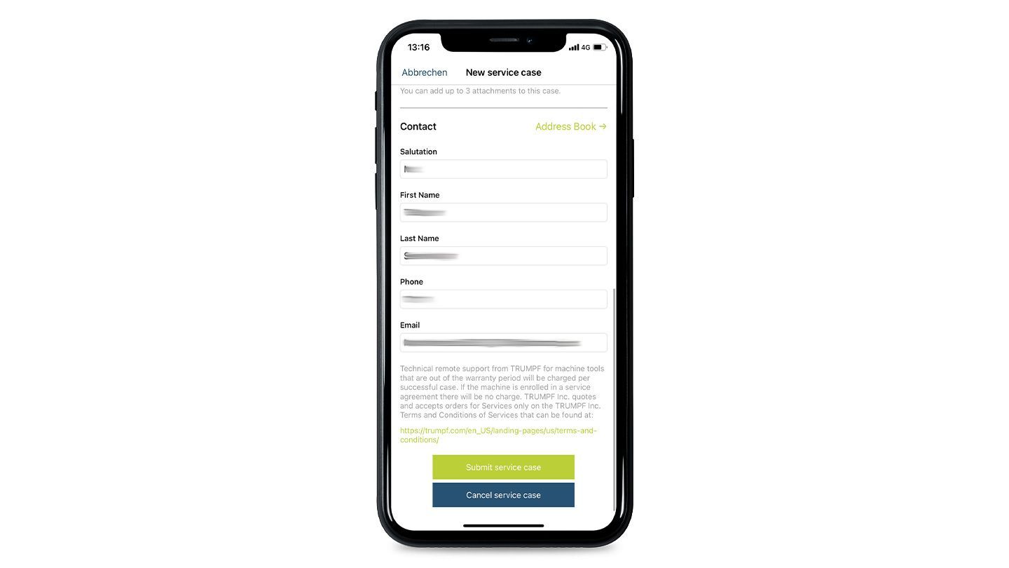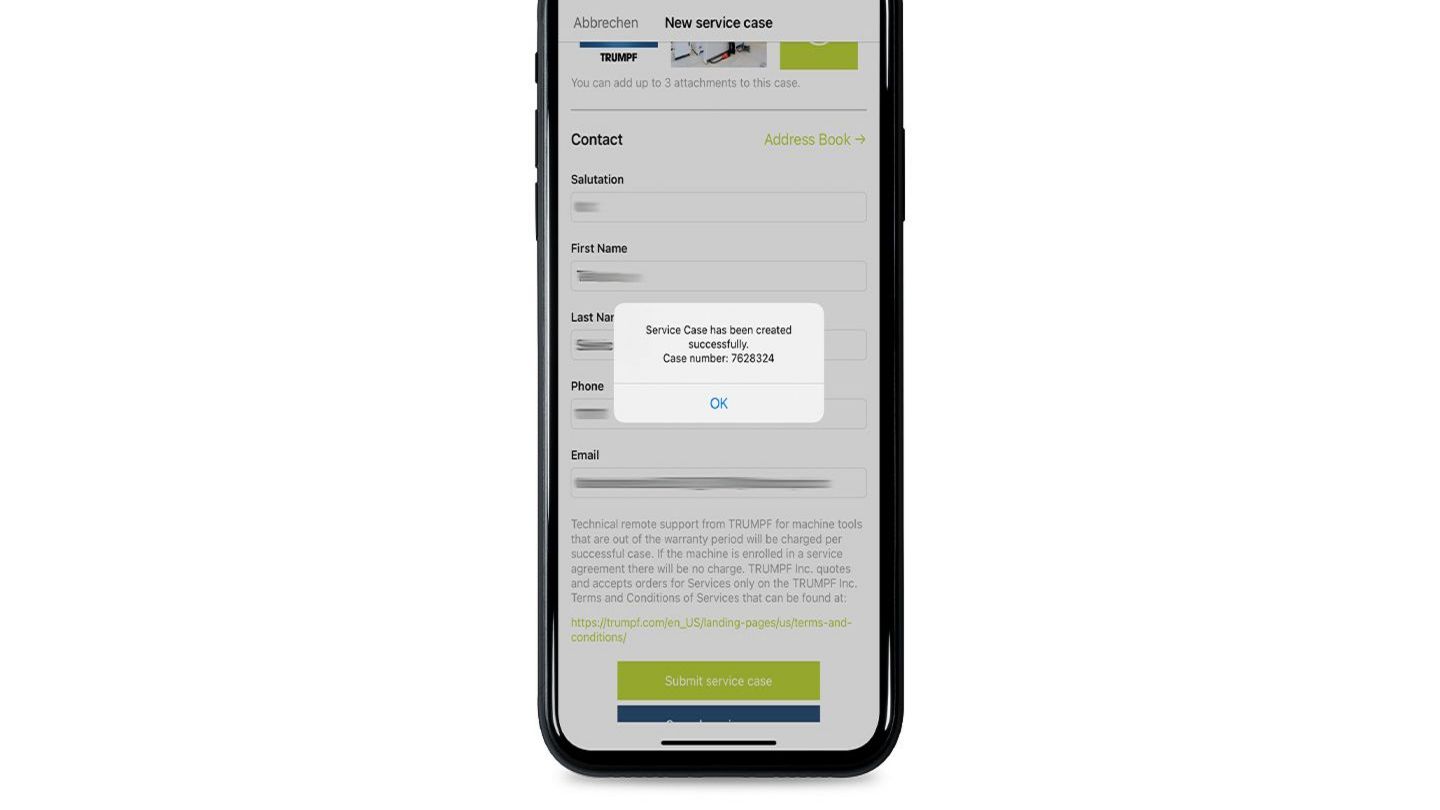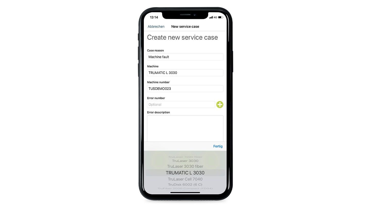 Регистрирайте случаите за сервизно обслужване за машината или софтуера си удобно и лесно с приложението. Прозрачността на случаите за сервизно обслужване в цялата Ви компания осигурява видимост за всички смени. Необходимо е само да оставите информация за връзка, за да може TRUMPF да се свърже с Вас.