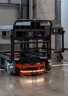 Beim Material Flow Kit können die mobilen Roboter bis zu neun Stationen anfahren. Dazu zählen Maschinen in der Blechfertigung, aber auch manuelle Arbeitsplätze oder der Versand. Pro Station lassen sich bis zu acht Übergabeplätze für das Transportgut bestimmen. Sobald ein Produktionsmitarbeiter seine bearbeiteten Teile weitertransportieren möchte, fordert er über die Web-App den mobilen Roboter an. So kann er die Werkstücke auf einem Palettenwagen an das Fahrzeug übergeben, ohne seinen Arbeitsplatz zu verlassen. Der mobile Roboter kann bis zu einer Tonne Gewicht transportieren und eignet sich daher für einen Großteil der Bauteile in der Blechfertigung. Veränderungen in der Routenplanung, etwa wenn eine Maschine den Standort wechselt, lassen sich in einem mitgelieferten Software-Tool vom Kunde selbst vornehmen.