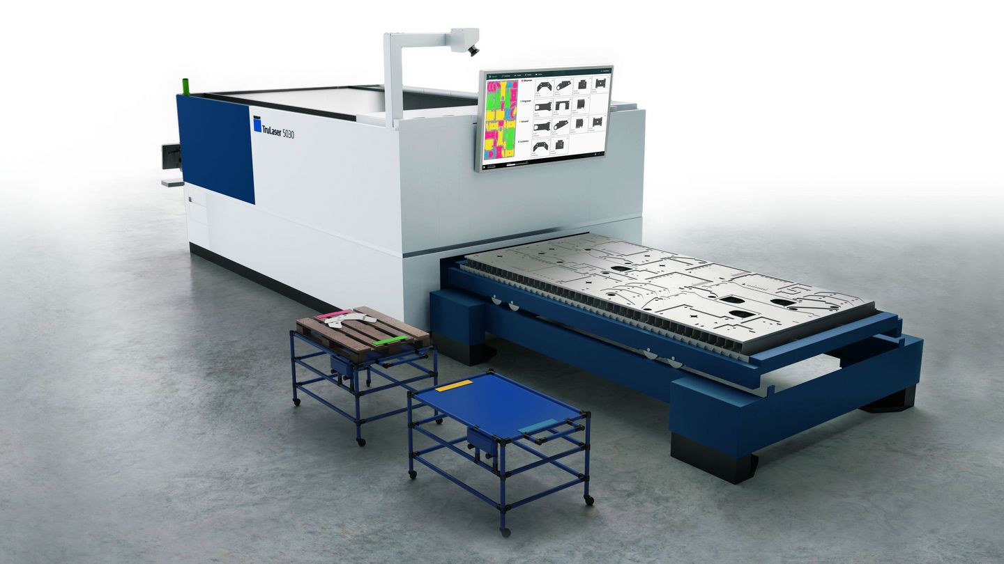 Der Sorting Guide funktioniert mithilfe künstlicher Intelligenz. Er besteht aus einer Kamera und einem Industrie-PC mit intelligenter Bildverarbeitung. Sein neuronales Netz erkennt, welche Teile der Maschinenbediener bereits von der Blechtafel entnommen hat. Im Gegensatz zu herkömmlichen Bildverarbeitungs-verfahren lässt sich dieses Netz durch kontinuierlich gesammelte Daten weiter trainieren und verbessern. Darüber hinaus dient die Datenbasis dazu, künftig weitere Optimierungspotenziale für die Anwender zu erschließen. Voraussetzung für den Einsatz des Sorting Guide sind aktuell die Softwarelösungen TruTops Fab oder TruTops Boost.