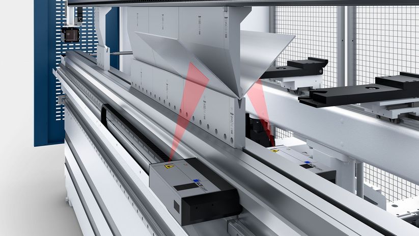 ACB Laser ist ein berührungsloses, optisches System zur Winkelmessung. Ein Laser projiziert eine Linie auf das Blech, eine Kamera detektiert den Winkel. Hierfür werden die vordere und die hintere Messeinheit automatisch oder CNC-gesteuert an die richtige Stelle gefahren. 4 verschiedene Messmethoden (ACB Speed, ACB Smart, Identifizieren und Kopie Eintauchtiefe) erhöhen dabei den Einsatzbereich und die Produktivität. Ihre Bauteile erhalten durchgehend präzise Winkel mit einer Genauigkeit von ±0,3° bei einem großen Messbereich von 30° bis 150°. Bereits das erste Teil wird so zum Gutteil, unabhängig vom Material.