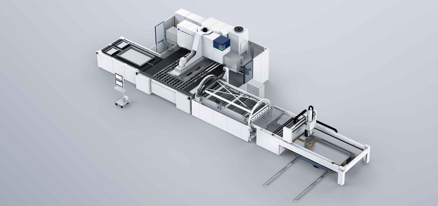 Large format or small pre-cut parts, the station even flexibly turns preformed parts, including ones from the punch-laser combination machine..