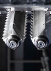 TRUMPF’s new cleaning method removes the slag in a two-step roughing and finishing process. The developers equipped the cleaning tools with serrated and continuous cutting edges. The rotating tools are arranged to the right and left of the slat. The serrated cutting edges break up the slag, while the continuous cutting edges scrape it off. This process runs continuously, allowing cleaning to proceed at a speed of 13 to 32 feet per minute. The innovative cleaning tools are available in two versions, one for slat thicknesses of between 0.080 and 0.120 inches and another for cleaning 0.120 to 0.150-inch-thick slats. All tools have the same high resistance to wear as they are made from hardened material. Another notable feature is the wear markings, designed as notches in two locations, which function like the indicators found in tire treads. If they are no longer visible, the tool is worn out and must be rotated 180 degrees. This ability to rotate further extends the life of these replaceable tools. Thanks to a quick-change system utilizing lock buttons, the process is fast and simple.