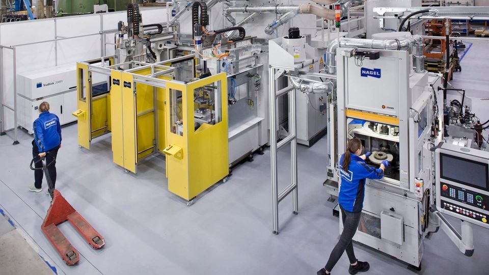 "We have joined forces with TRUMPF in development. And they use a double trick for beam shaping." The BrightLine Weld beam shaping technology divides the laser power into an independently adjustable core and ring zone, a bit like a shower head with a core and ring beam. The second game changer for powder consumption is TRUMPF's bifocal technology: part of the laser beam heats the casting slightly just before the powder shower descends. This means that the powder adheres immediately without any problems instead of bouncing off and turning into expensive waste. Nagel now has an economical production method for Euro 7-compliant, low-abrasion brake discs.