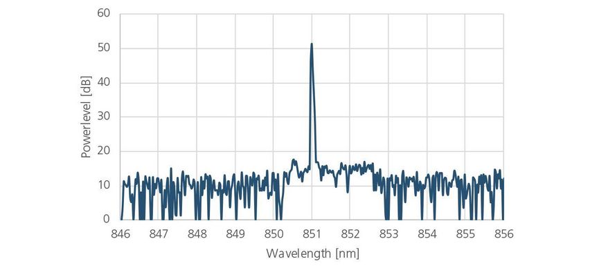 Due to the low temperature dependence of the emission wavelength (0.06 nm/K) and the narrowband spectral emission of typically 100 MHz, temperature-stabilized single-mode VCSELs are particularly suitable as a wavelength reference for FTIR spectrometers.