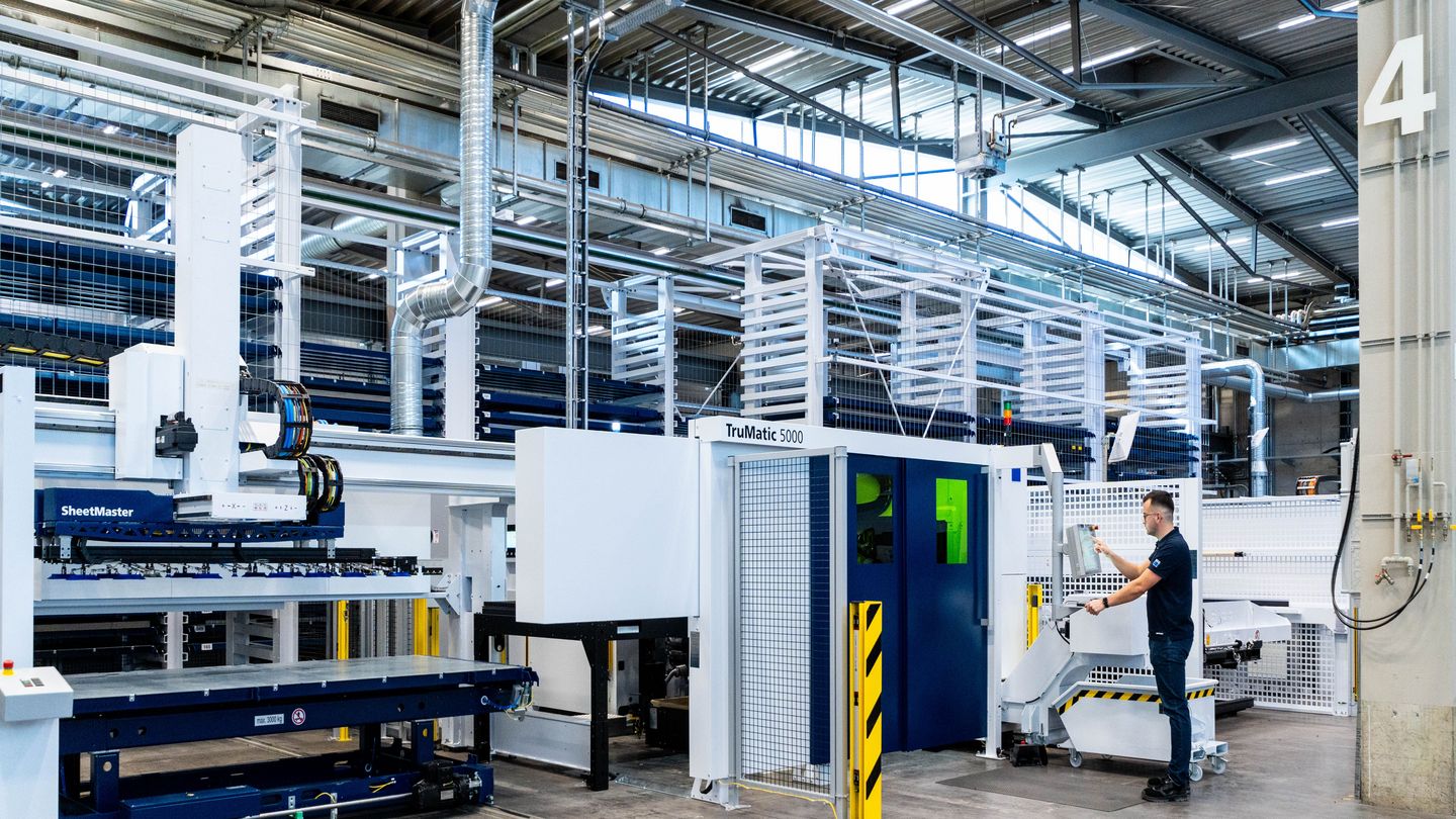 La solución también ayuda a mejorar el flujo de materiales en la producción. Conectado al software Oseon de TRUMPF, el TruMatic 5000 siempre sabe qué material necesita para el siguiente trabajo y lo introduce de forma independiente. Esto significa que el sistema de producción puede seguir funcionando sin problemas cuando se termina un trabajo. TRUMPF presentó la TruMatic 5000 por primera vez en la feria BlechExpo en 2023. Las empresas pueden utilizarlo para cortar, perforar y formar piezas. Con su láser de 6 kW, es adecuado para una amplia gama de piezas. También cuenta con un ToolMaster para cambios de herramientas automatizados y un Sheet Master, que garantiza el flujo de material entre la máquina y el almacén.