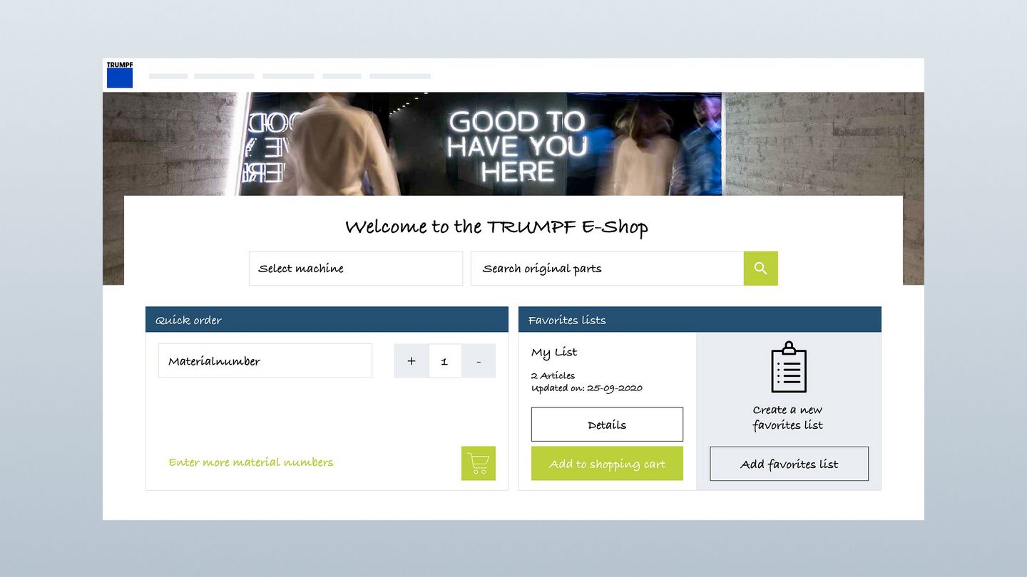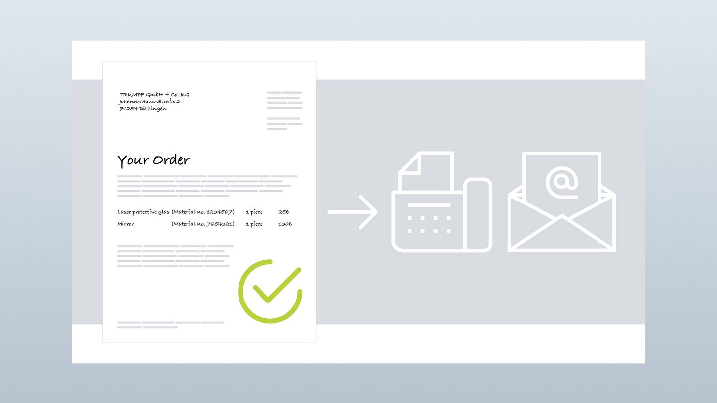 Sfrutta tutti i vantaggi dell'E-Shop TRUMPF, ma esegui l'ordine nel tuo sistema di gestione inventario con i tuoi processi di autorizzazione e ordinazione interni.