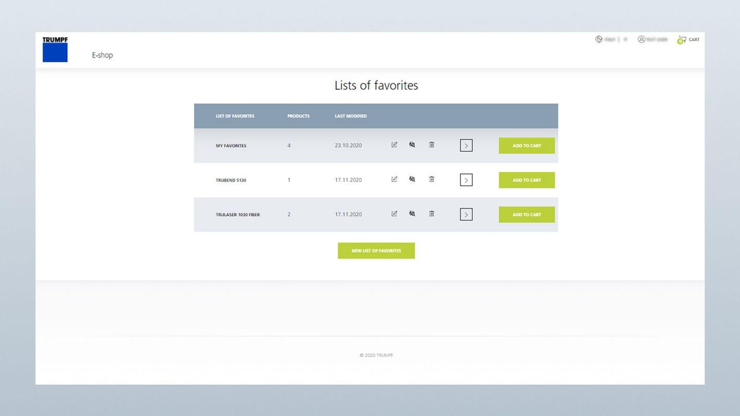 Uživatelská příručka MyTRUMPF: e-shop TRUMPF