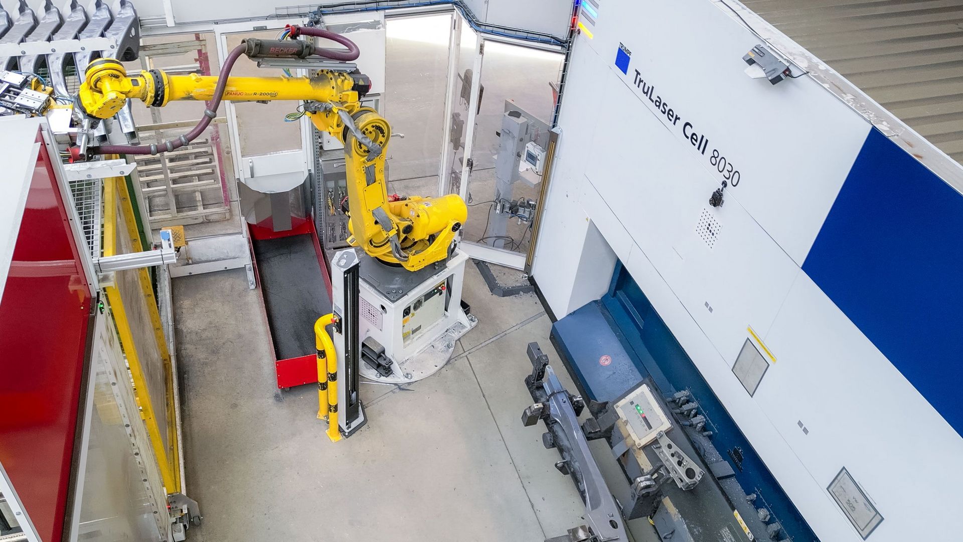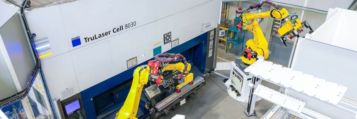 TRUMPF und Autom8 liefern ein Konzept, das überzeugt: Zwei der vorhandenen TruLaser Cell 8030 werden mit einer cleveren 1-Roboter Automatisierung versehen, welche aufgrund der platzsparenden Anordnung sowohl einen automatisierten als auch manuellen Betrieb der TruLaserCell 8030 ermöglicht und damit perfekt an die Platzverhältnisse in der GEDIA Produktion angepasst ist. Aber kurz darauf ist wieder Flexibilität gefragt: Veränderte Stückzahlen erfordern die Automatisierung einer weiteren TruLaser Cell 8030. Da diese Anlage jedoch nur zur Hälfte mit der Produktion des Längsträgers ausgelastet werden kann, ist guter Rat teuer. Aufgrund der positiven Erfahrungen mit den ersten beiden Automatisierungen gehen Kaufmann und Müller den nächsten Schritt: Sie beauftragen eine Vollautomatisierung, die es ermöglicht, den Längsträger sowie einen weiteren, ähnlich dimensionierten Artikel, ohne großen Rüstaufwand und Bedienereingriff 24/7 zu produzieren.