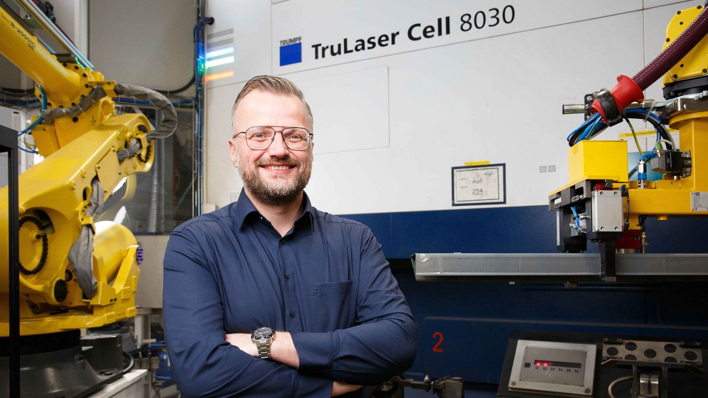 Kaufmann und sein Kollege Björn Müller, Projektleiter Investitionsgüter im Maschinen- und Gebäudemanagement, wenden sich an TRUMPF. In einem gemeinsamen Workshop mit TRUMPF Experten und Spezialisten des Solutionspartners Autom8 legen sie auf den Tisch, was sie sich für einen vollautomatisierten Prozess wünschen. „Ein wichtiger Punkt war für uns das Behältermanagement“, sagt Müller und führt aus: „Wir benötigen in einem automatisierten Prozess spezielle Behälter. Die Anschaffung ist teuer und auch das Handling und die Lagerung wirken sich negativ auf die Wirtschaftlichkeit aus.“ Auch die Qualitätssicherung mit passenden Kamerasystemen sowie eine ausgereifte Greifer-Technologie standen auf der Agenda. „Warmumformteile haben meist eine Trichterform und eine raue Oberfläche. Zur Weiterverarbeitung am Laser werden sie gestapelt. Das automatisierte Greifen und vor allem das Separieren der Teile ist keine Kleinigkeit“, sagt Müller. Last but not least stand der Automatisierung nur begrenzter Platz zur Verfügung.