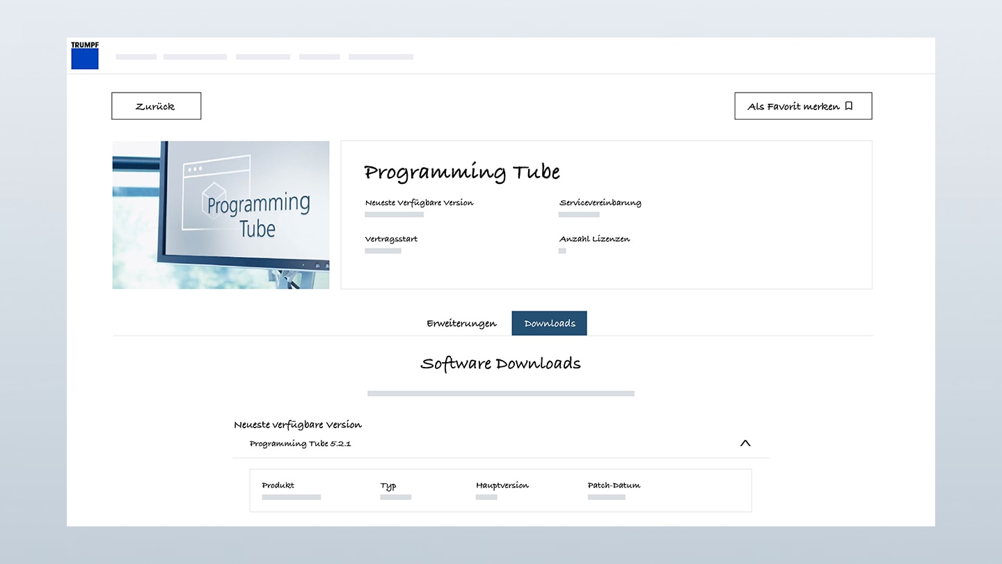 Downloads nur mit gültiger Servicevereinbarung für TruTops Software möglich.