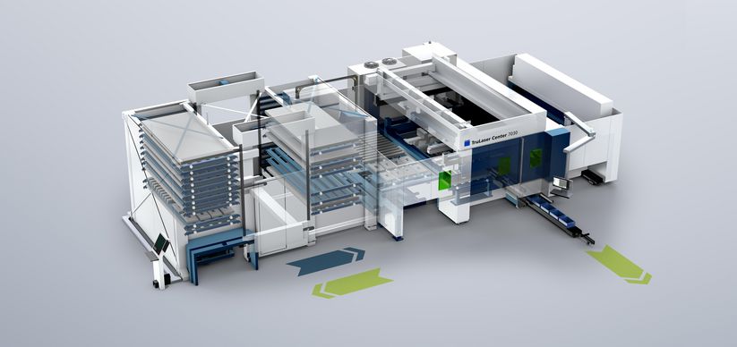 Nutzen Sie die enorme Produktivität Ihrer Maschine voll aus: Dank der Anbindung der TruLaser Center 7030 an ein Lager ist Ihre Maschine rund um die Uhr mit Rohmaterial versorgt und kann Fertigteile speichern.