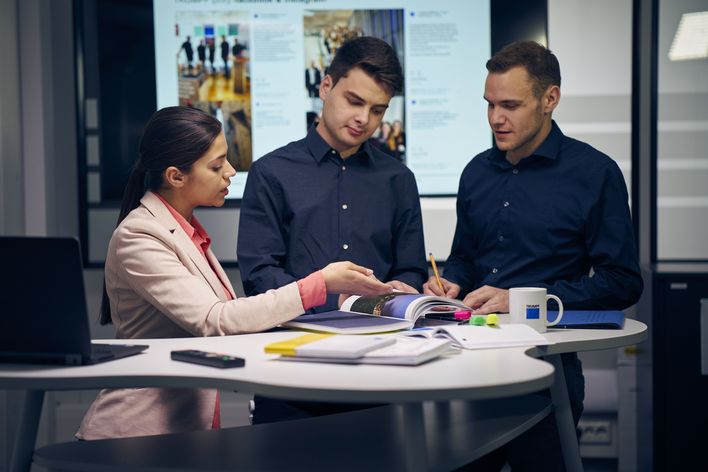 Organisiert hat Aylin immer schon immer gerne – sei es für die Abschlussfahrt in der Schule oder den Abiball. Jetzt macht sie ihre Leidenschaft zum Beruf. Zusammen mit drei anderen Auszubildenden im Bereich Büromanagement lernt sie, worauf es im Berufsalltag ankommt. Fehler sind erlaubt. „Bei TRUMPF haben wir einen Spruch: Es ist nicht schlimm, wenn man nicht alles weiß, man muss nur wissen, wo man es findet.“ Denn ein offenes Ohr haben die Kollegen immer. Und natürlich ist auch immer auf den Rat und die Unterstützung der anderen Auszubildenden Verlass.