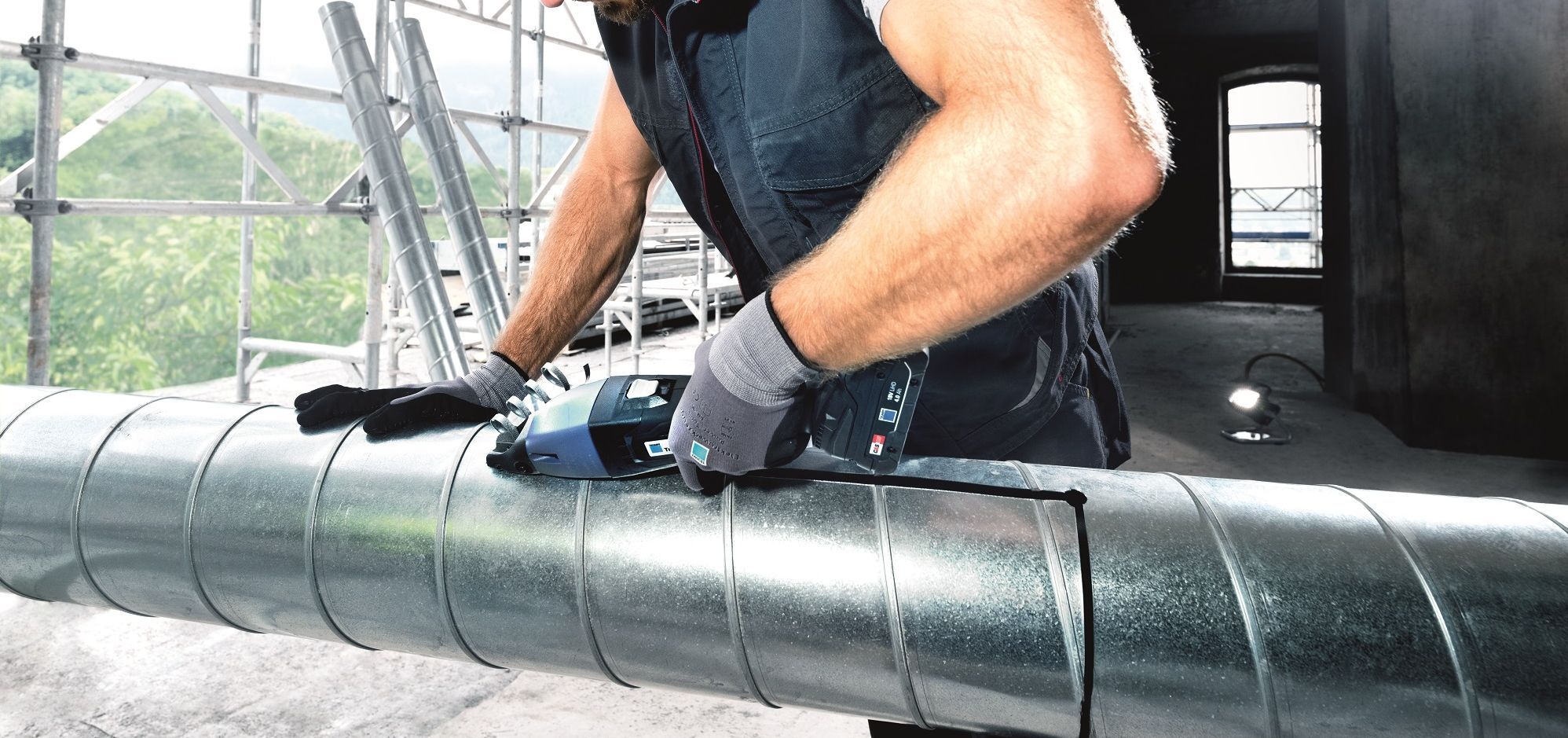 Funkenfrei Metalltanks zerlegen, Spiralrohre einfach aber exakt schneiden, Falze schließen oder Lüftungskanäle zusammenfügen – wir bieten Profi-Lösungen rund ums SHK-Blech!