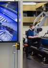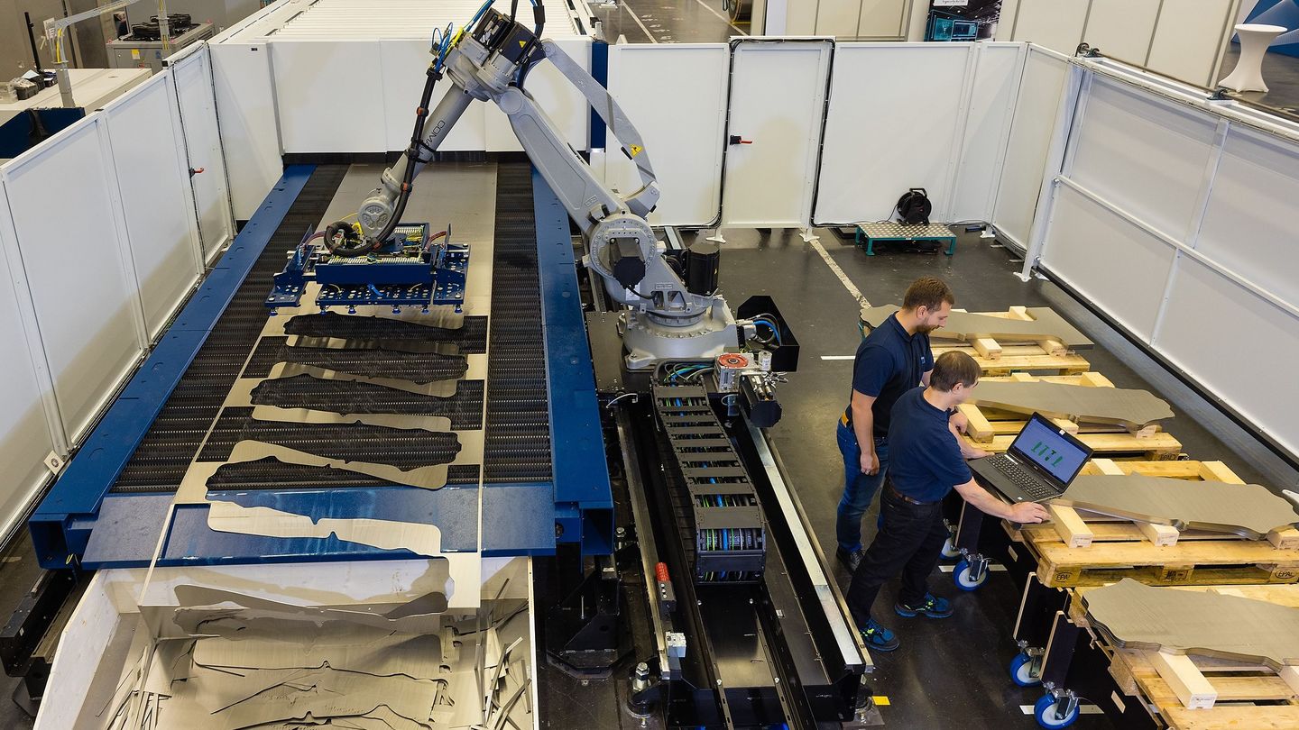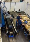 Ein Roboter zum Entladen des Gesamtsystems sorgt für schnelles und zuverlässiges Entnehmen der Blechteile. Die Software TruTops Boost berechnet die Eingangsdaten für vorgefertigte Zyklen/Teileprogramme, die auf der Sinumerik ablaufen. Der Anwender muss sich deshalb nicht um spezifische Roboterbewegungen oder deren Programmierung kümmern. Dadurch sind keine besonderen Vorkenntnisse oder Schulungen für das Handling des Roboters notwendig.