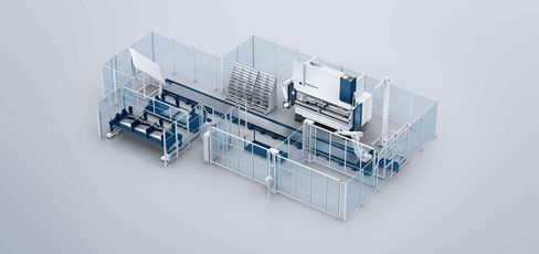 Mit dem Roboter auf einer verfahrbaren Schiene biegt die TruBend 8000 vollautomatisch acht Meter lange Bleche mit maximal 220 Kilogramm Gewicht. Der Aufbau orientiert sich an Ihren Bedürfnissen – auf Wunsch inklusive Lageranbindung, Zentrierstation, Greifer- und Werkzeugwechsel sowie Umgreifstation und weitere Blechbearbeitungsprozesse wie zum Beispiel Fügen oder Tiefziehen. Die Gesamtlösung ist offline programmierbar.