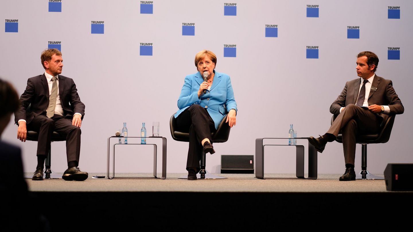 Bundeskanzlerin Angela Merkel und Ministerpräsident Michael Kretschmer besuchen TRUMPF Sachsen