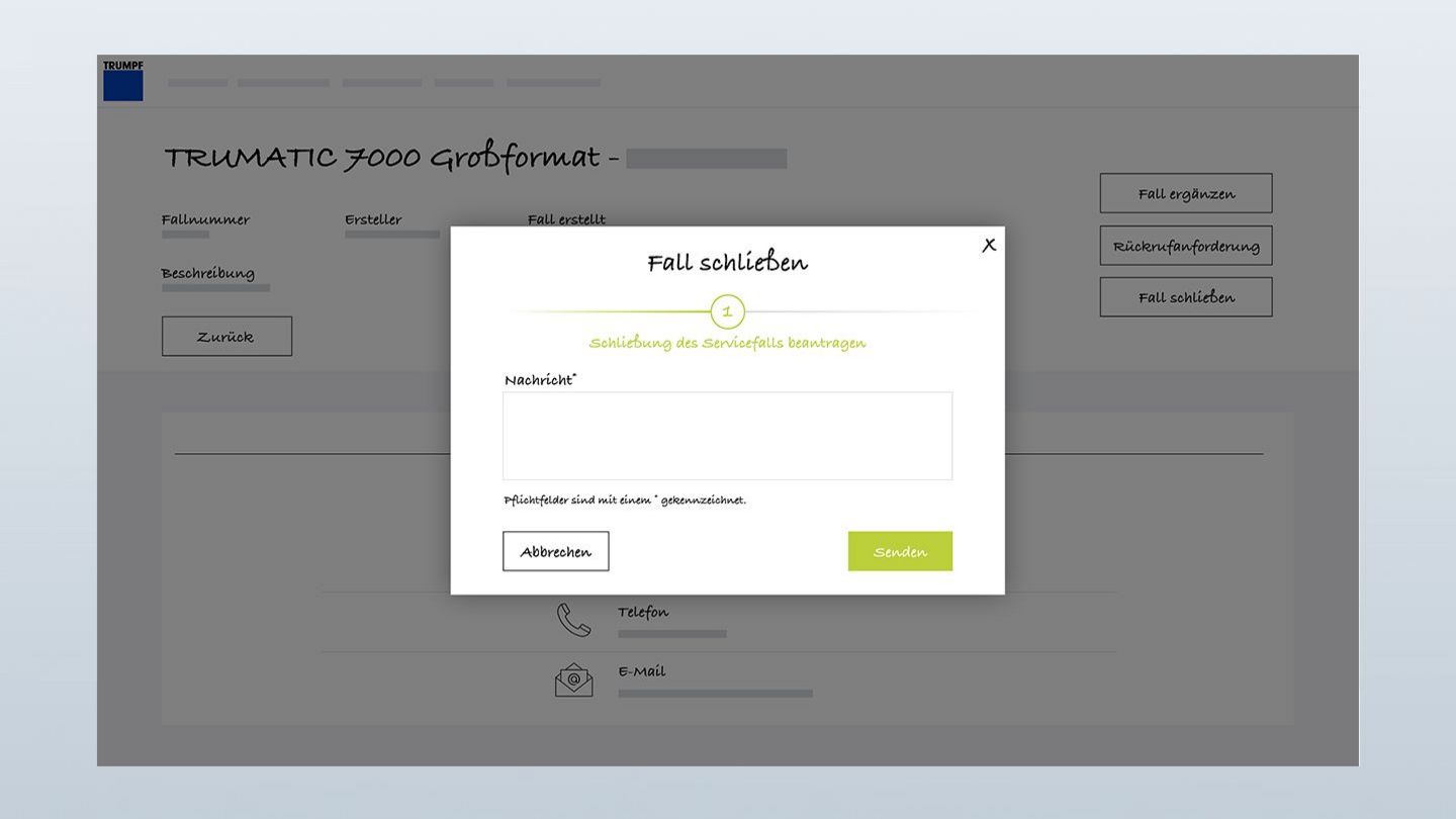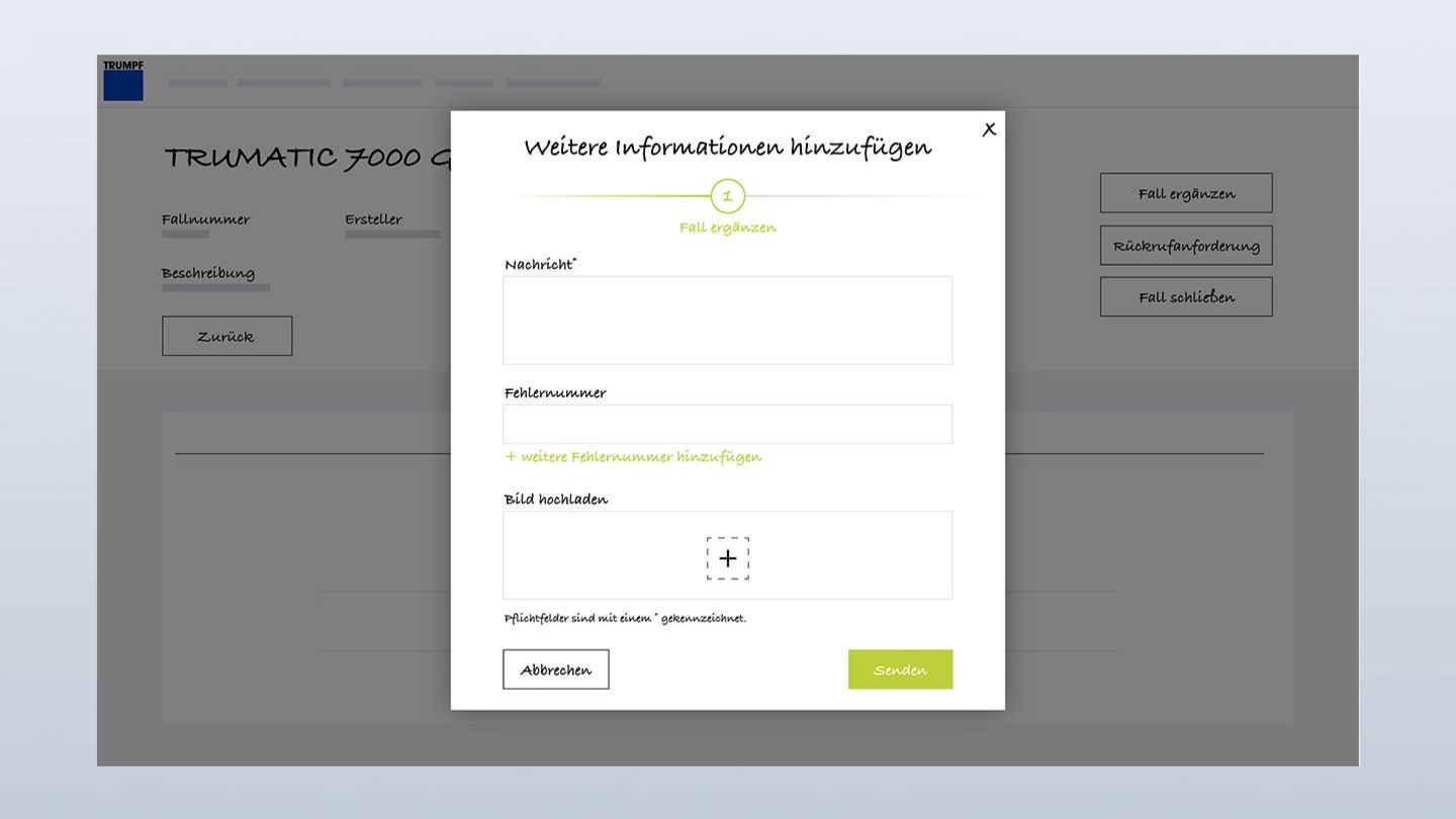 My TRUMPF User Guide: "Meine Servicefälle"