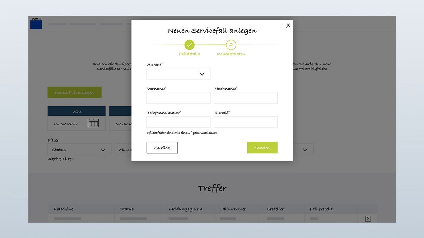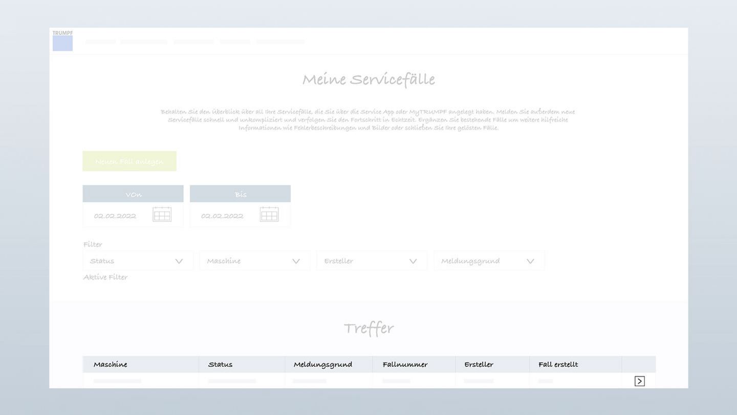 "Meine Servicefälle": So behalten Sie den Überblick über Ihre Servicefälle und legen in MyTRUMPF direkt neue Servicefälle an