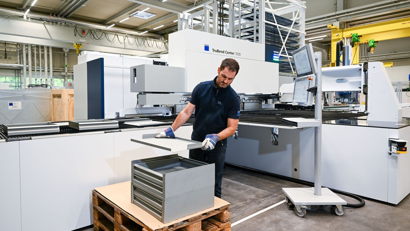 Die verkettete Lösung von TRUMPF ist über die Software OSEON vernetzt. Anwender können dadurch nicht nur den Materialfluss flexibel steuern, sondern erhalten auch vollständige Transparenz über die Fertigung. Auch Eilaufträge lassen sich über die Software flexibel einlasten. Da die verkettete Lösung aus Mittelformatmaschinen besteht, ist sie zudem besonders kompakt. „Mit unserer Lösung erhalten Unternehmen die Möglichkeit, ihre Fertigung stückweise zu automatisieren und zur Smart Factory auszubauen“, so Götz. Die Lösung eignet sich vor allem für kleine und mittlere Unternehmen, die ihre Fertigungskapazität erweitern wollen. Aufgrund der hohen Flexibilität richtet sich die Lösung vor allem an Product Shops, insbesondere aus den Bereichen Aufzugsbau, Kälte- und Klimatechnik, Schaltschrankbau, Großküchenbau oder Ladenbau.
