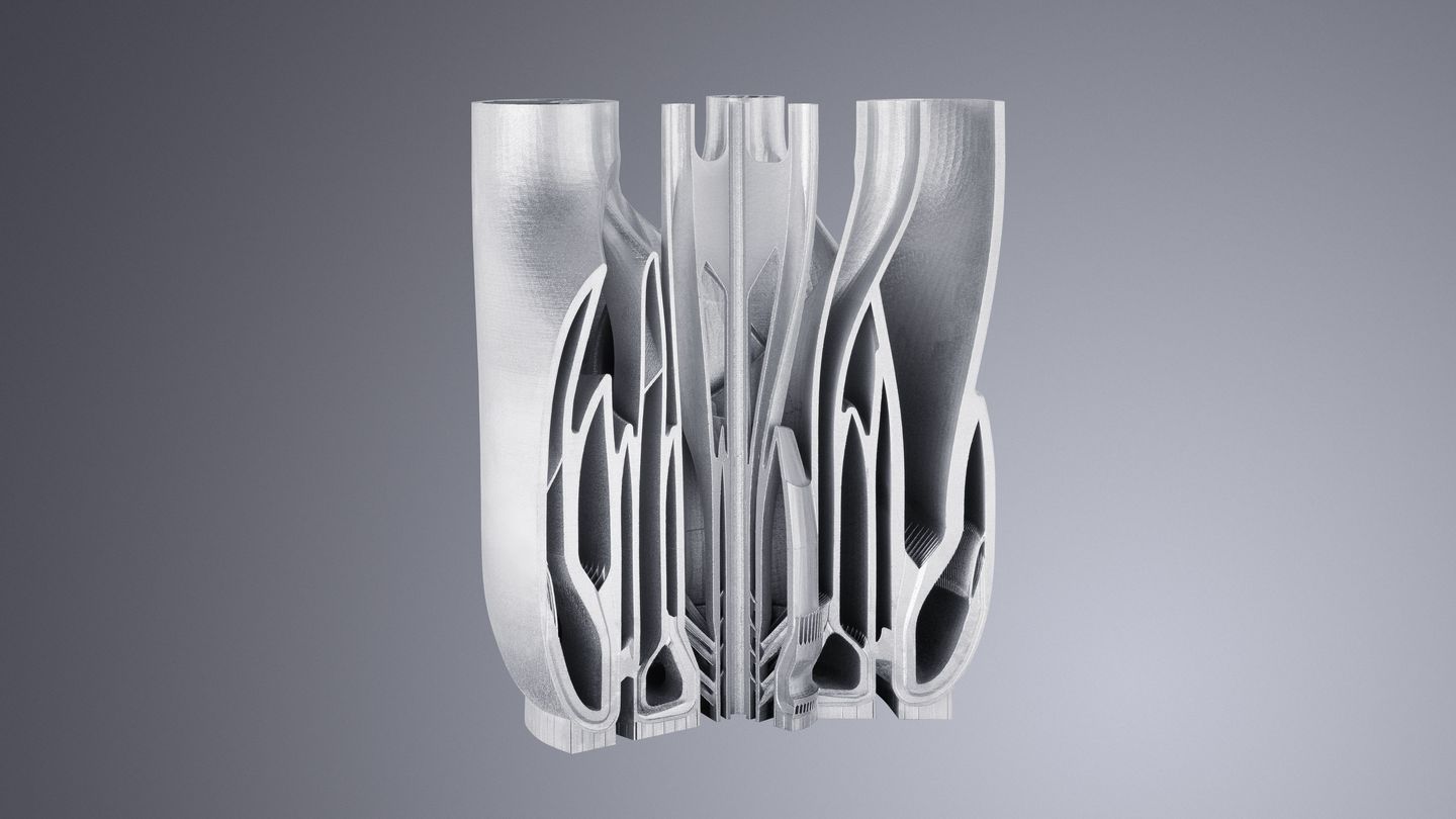 Und wie sieht es mit der nächsten Generation von 3D-Druckern aus? TRUMPF arbeitet an Maschinenkonzepten, die den additiven Prozess noch produktiver machen. Der auf der Formnext vorgestellte Demonstrator der TruPrint 5000 basiert auf dem Multilaserprinzip und ist mit drei 500 Watt starken TRUMPF Lasern ausgestattet, die gleichzeitig überall in der Prozesskammer arbeiten und so schneller und effizienter Bauteile im Bauzylinder generieren.