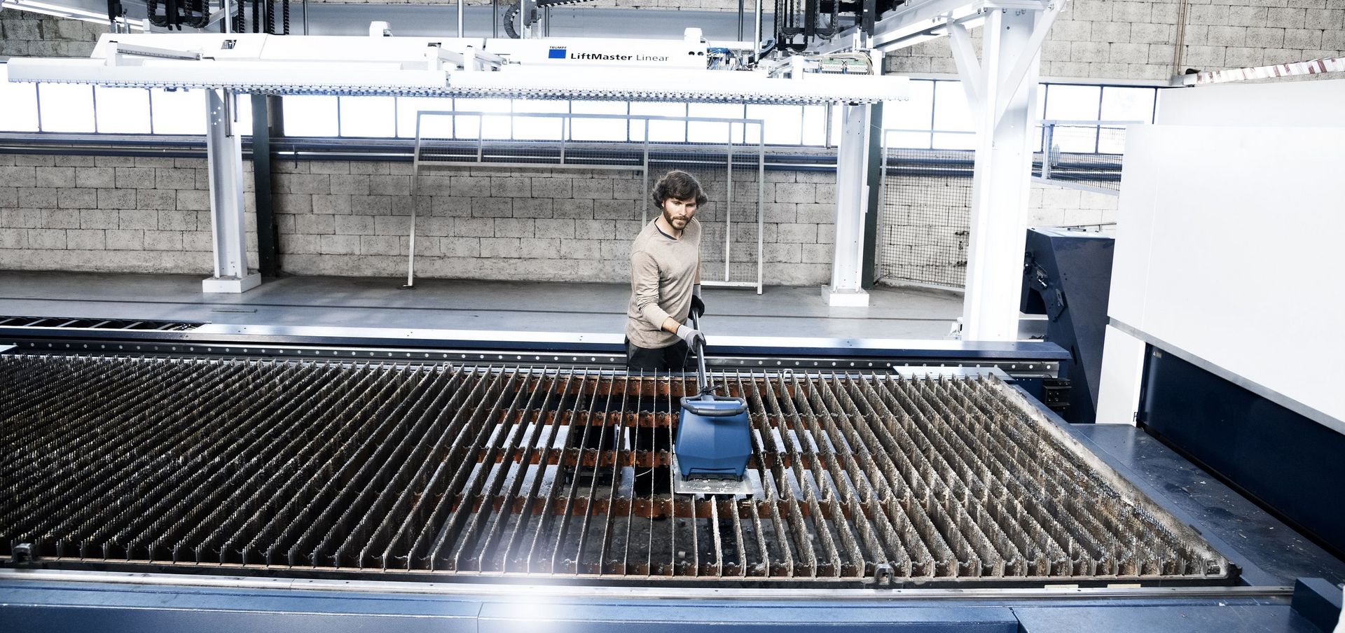 Der Auflageleisten-Reiniger TruTool TSC 100 säubert die Leisten aller herkömmlichen Flachbettlasermaschinen mehrfach und schnell, sodass Sie diese bis zu viermal länger nutzen können. Die Leisten müssen zur Reinigung nicht ausgebaut werden. Zusätzlich kann die Reinigung Hauptzeitparallel zur Arbeit der Lasermaschine erfolgen. Das ist praktisch und spart Ihnen Zeit. Dabei liegt die Reinigungsdauer einer kompletten Palette in der Standardgröße von 1500 mm x 3000 mm bei etwa 30 Minuten.