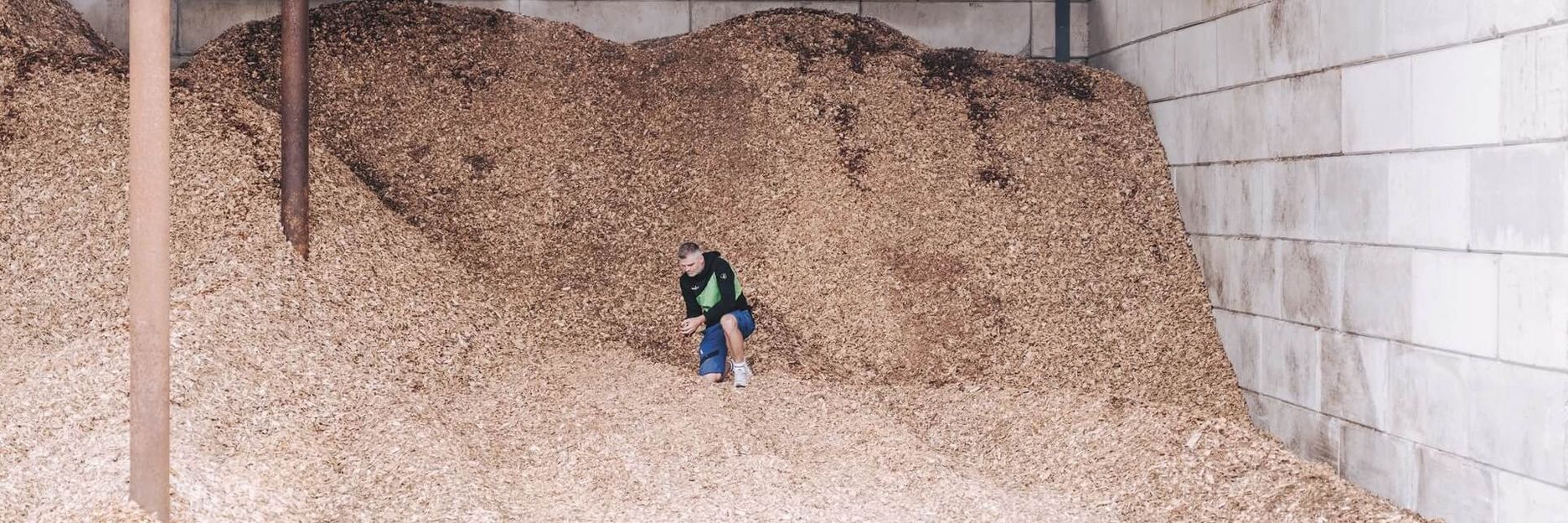 The heart of Heizomat: Robert Bloos checks the quality of the regional wood chips.