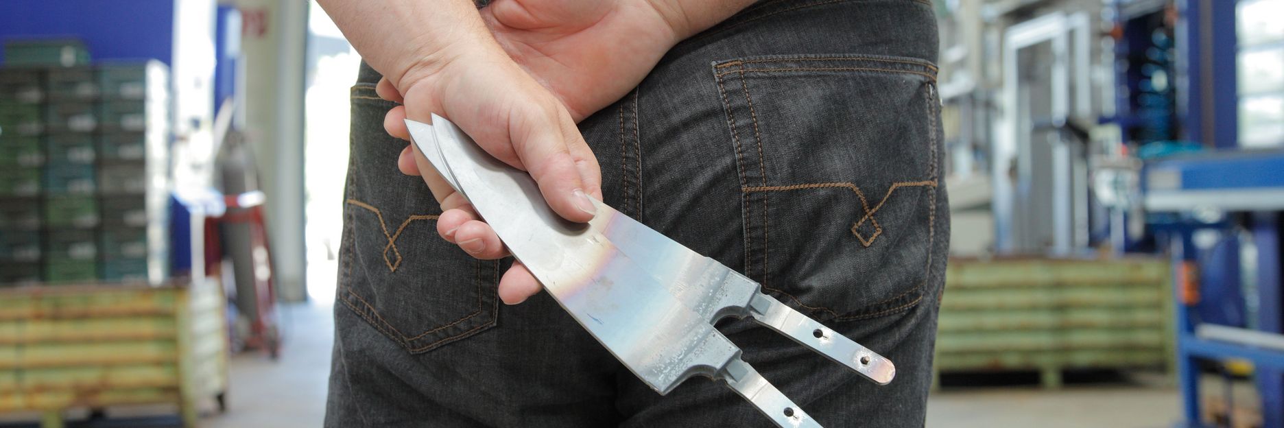 Tempting as it was, however, it just wouldn’t work. Not in the process that knife manufacturer Zwilling was using. Ulrich Nieweg, head of Zwilling’s prefabrication department, explains: “Fifteen years ago, we introduced upset forging so that we could form the blade, bolster, and tang — the piece in the handle — from a single blank.”