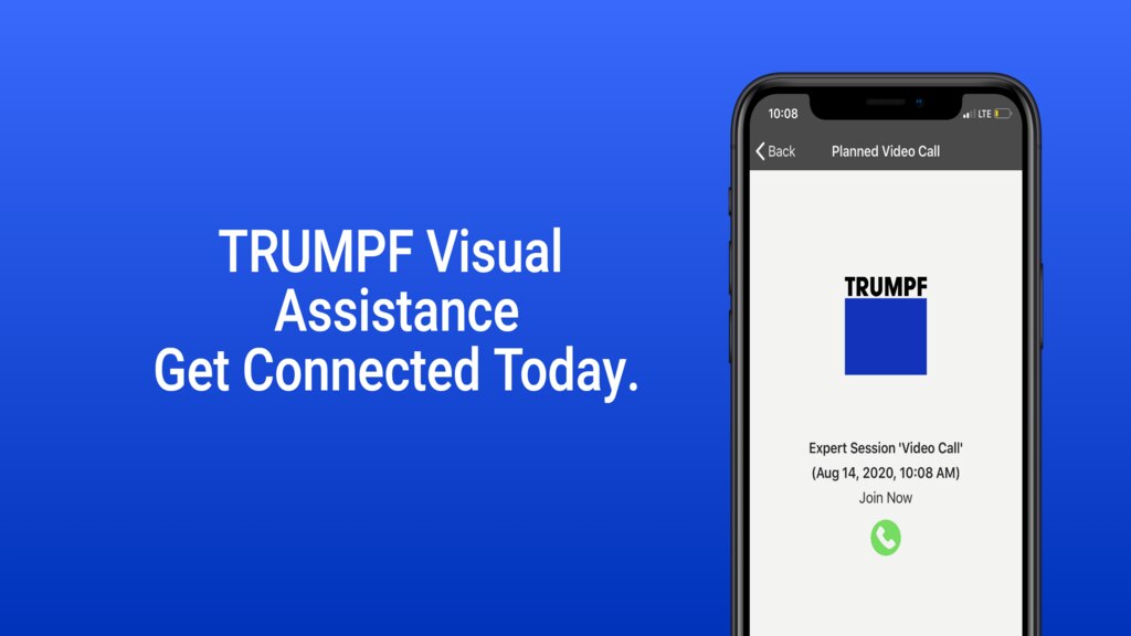 A mobile version of TRUMPF Visual Assistance can be used on smartphones or tablets. Easy to set-up for a call, this app is a great tool for problem diagnosis and spare parts clarification.