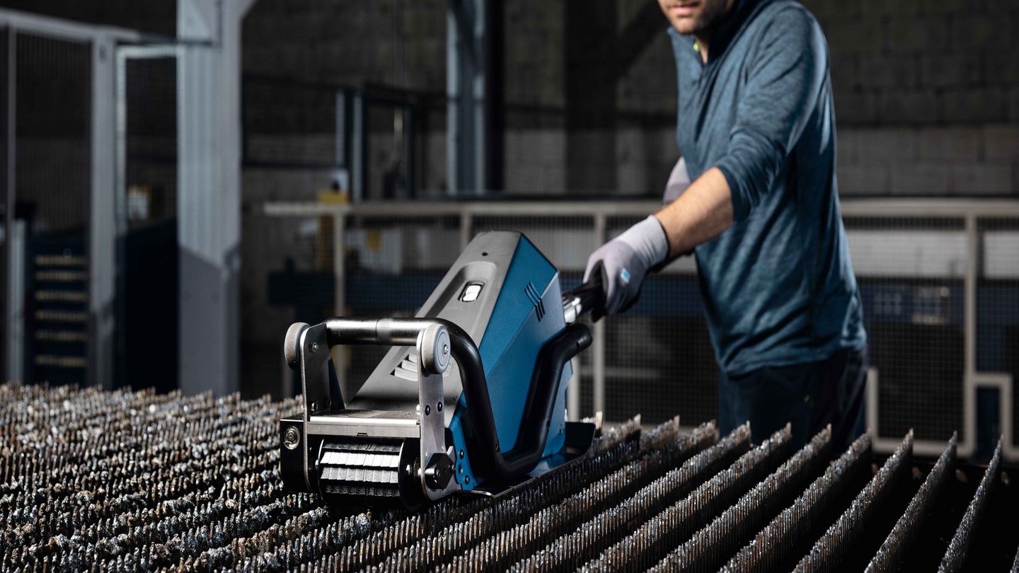 The new slat cleaner’s high performance is made possible by a powerful 1,700-watt motor and robust gearbox with integrated slipper clutch. This clutch protects the motor from overload situations. The drive components are housed in separate chambers and are protected from slag and dust particles without the need for any additional seals.