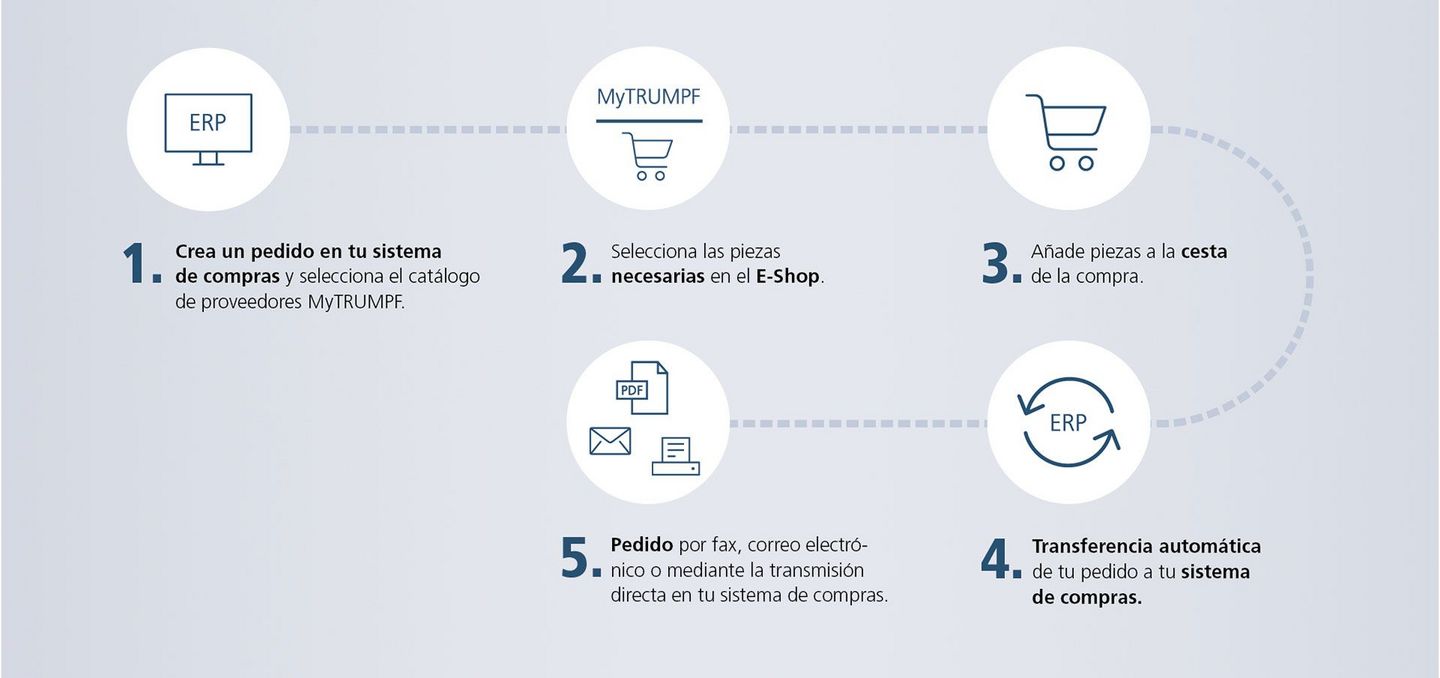 Benefíciate de todas las ventajas del E-Shop de TRUMPF, pero realiza los pedidos en tu propio sistema de gestión de mercancías con tus propios procesos de autorización y pedido.