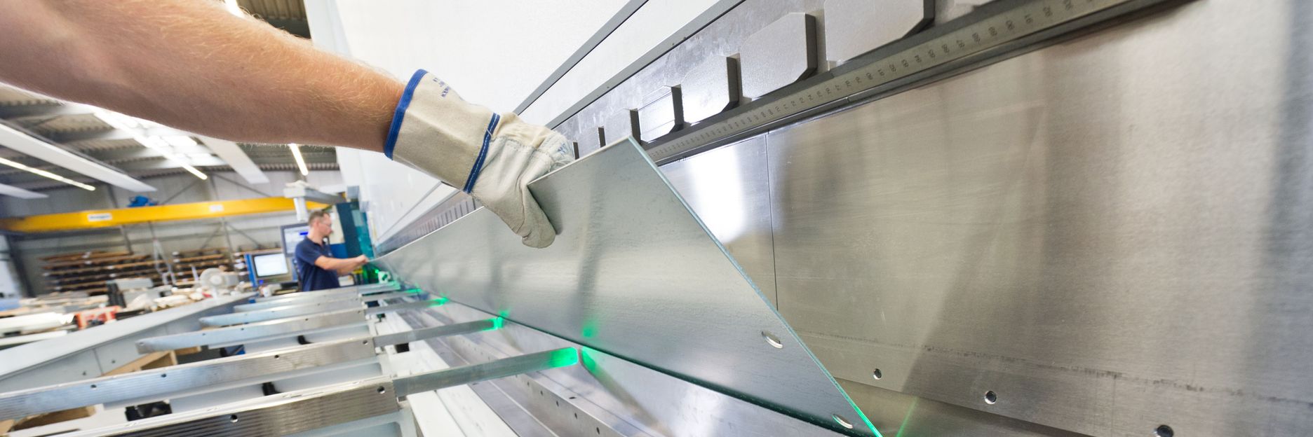 One highlight of the 400-ton press brake that everyone appreciates is the flexible tool system. “A key requirement for industrial buildings is that you don’t want water on the outer shell to drip onto a cut edge. Otherwise you get corrosion infiltrating the metal,” Kleinau explains. That’s why Schrag folds the edges over, which requires at least two different lower tool slots. They bend the sheet 45 degrees, fold it, bend it another 45 degrees and fold it again. And even then it still requires another 90-degree bend to produce a corner angle. “It simply wouldn’t work without lower tool displacement. That’s why it’s standard on all our machines,” says Kleinau.
