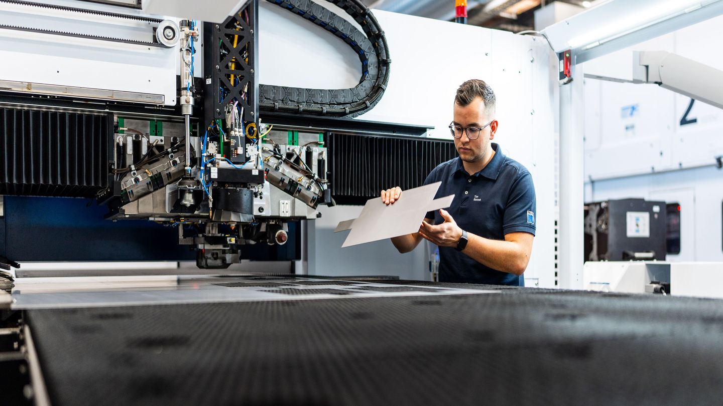 La solución también ayuda a mejorar el flujo de materiales en la producción. Conectado al software Oseon de TRUMPF, el TruMatic 5000 siempre sabe qué material necesita para el siguiente trabajo y lo introduce de forma independiente. Esto significa que el sistema de producción puede seguir funcionando sin problemas cuando se termina un trabajo. TRUMPF presentó la TruMatic 5000 por primera vez en la feria BlechExpo en 2023. Las empresas pueden utilizarlo para cortar, perforar y formar piezas. Con su láser de 6 kW, es adecuado para una amplia gama de piezas. También cuenta con un ToolMaster para cambios de herramientas automatizados y un Sheet Master, que garantiza el flujo de material entre la máquina y el almacén.