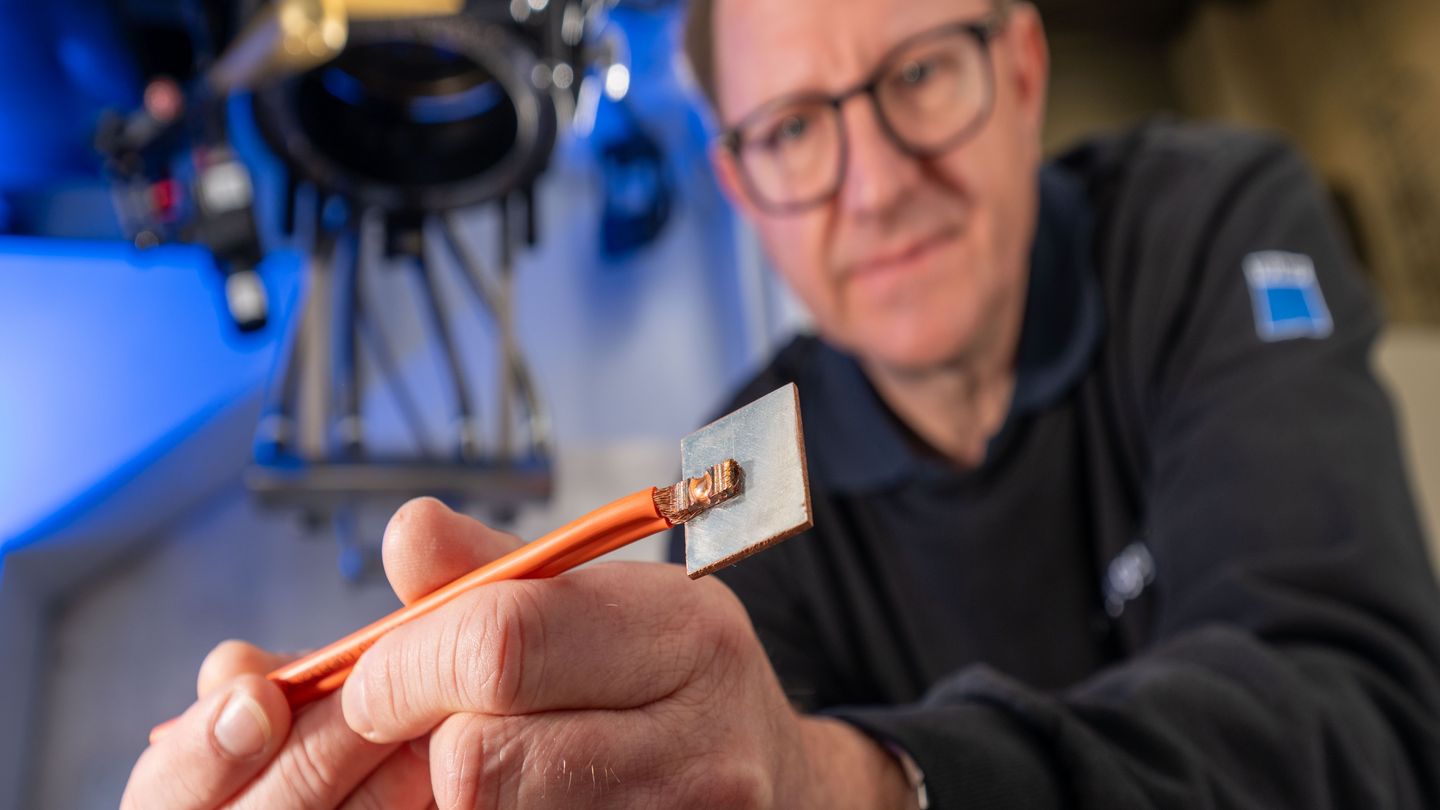 La nueva solución láser crea una unión firmemente soldada con baja resistencia eléctrica, lo que aumenta la eficiencia de la electrónica de potencia. El proceso está destinado principalmente a la fabricación de distribuidores de tensión para vehículos eléctricos e híbridos enchufables. Estos componentes distribuyen la alta tensión de la batería del vehículo al motor eléctrico, la iluminación y otros consumidores eléctricos, y se instalan en todos los coches eléctricos. Hasta ahora, los fabricantes tenían que producir uniones mecánicas convencionales para los distribuidores de tensión en varios pasos del proceso. Esto requiere mucho tiempo y puede dar lugar a errores. Además, las uniones mecánicas atornilladas son susceptibles a las vibraciones y presentan una mayor resistencia eléctrica. Esto provoca pérdidas de energía y una generación adicional de calor.