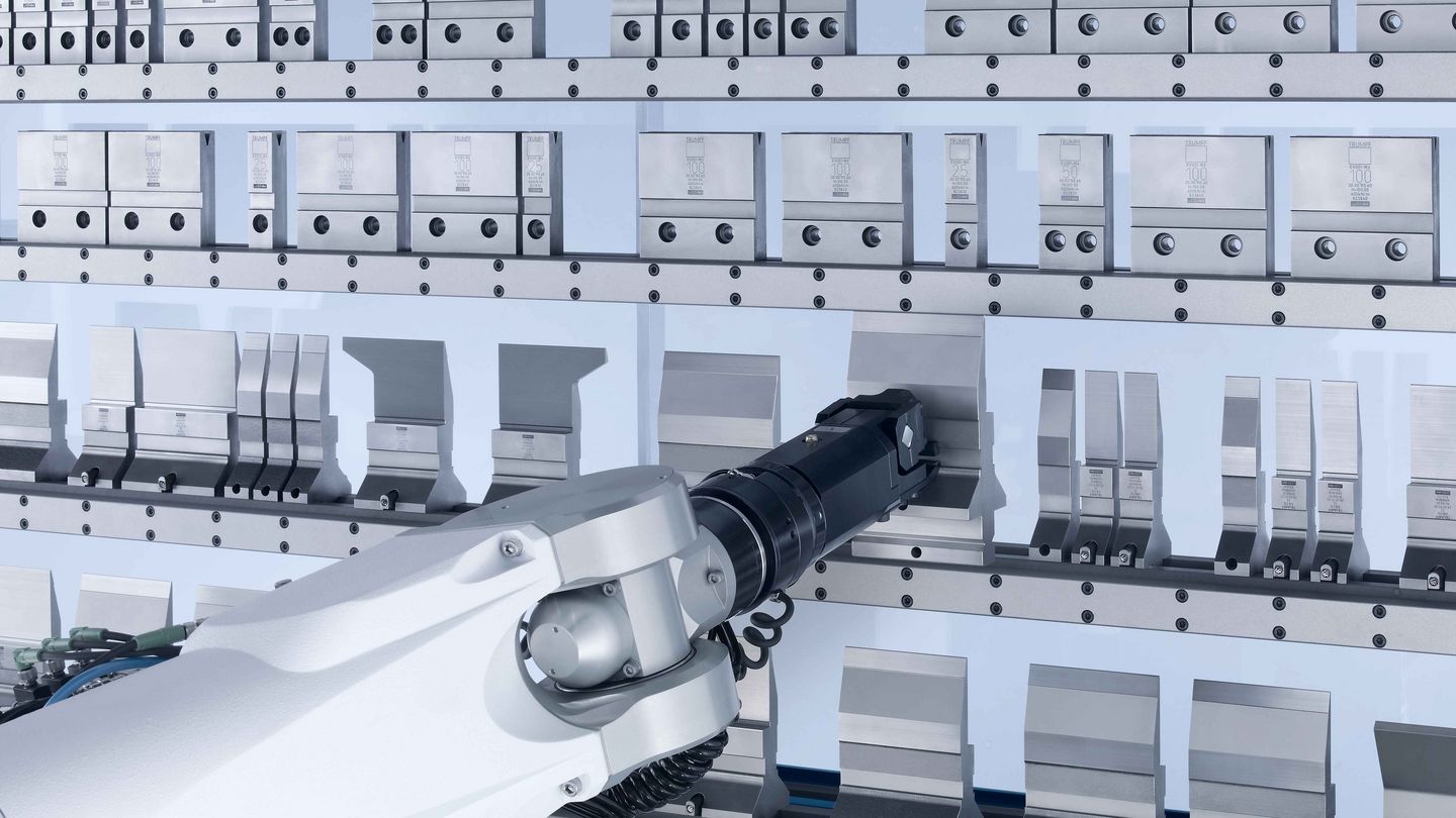 TRUMPF completa su exposición en tecnología de plegado con su solución de mayor éxito a nivel mundial, la TruBend Serie 5000, conectada al cambiador automático de útiles ToolMaster que potencia el rendimiento de la máquina. Sus avanzadas características, tales como el dispositivo de desplazamiento del útil inferior y el tope posterior de 6 ejes, permiten mecanizar una gran diversidad de piezas. El cambiador automático de útiles ToolMaster abre la puerta a un incremento del rendimiento de la máquina. Una ventaja inestimable precisamente en tamaños de lote pequeños ya que se ahorra mucho tiempo y esfuerzo en comparación con el proceso manual.