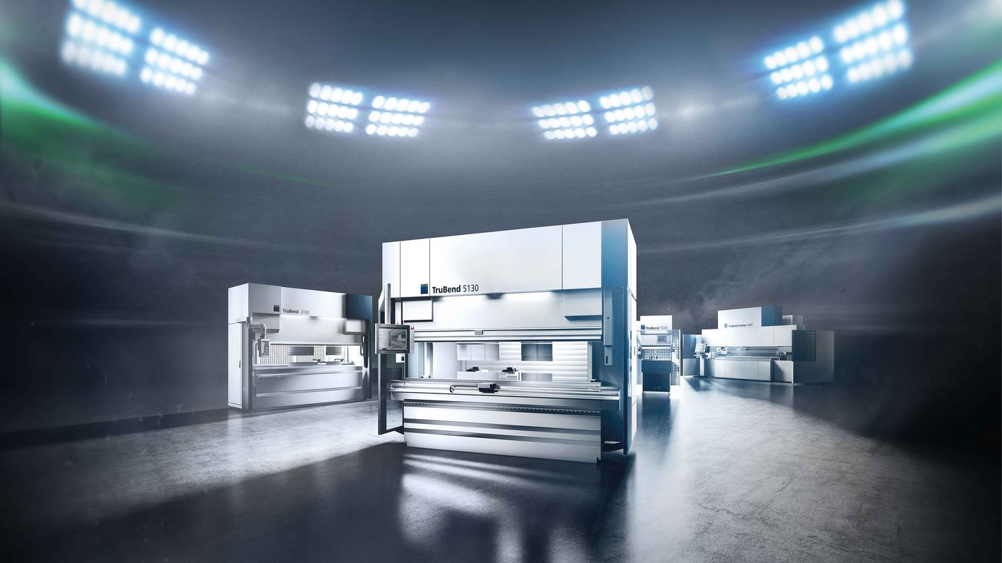 TruBend Serie 5000, el sistema de plegado con mayor éxito mundial de TRUMPF // TruBend 1100, costes reducidos de inversión y funcionamiento para un plegado de calidad // TruMark Station 7000, el láser de marcado perfecto para la producción automatizada en serie de gran tamaño // Software Oseon para el control de la producción y soluciones flexibles de Smart Factory