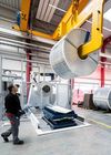 The production system is fully automated. An innovative system for transporting the sheet metal during cutting keeps the material moving quickly through the whole process, with impressive gains in productivity. The new system also uses many of the tried-and-tested features that TRUMPF is renowned for. These include Smart Collision Prevention, which prevents cut parts from tilting and damaging the laser cutting head. The entire line – from the coil stock to the pallets of finished parts – can be conveniently monitored and controlled from a single operator module. The points at which parts are removed and stored are automatically programmed and displayed on the screen, for example, and the portable operator module can be used at any of the key points in the system for set-up and servicing tasks.