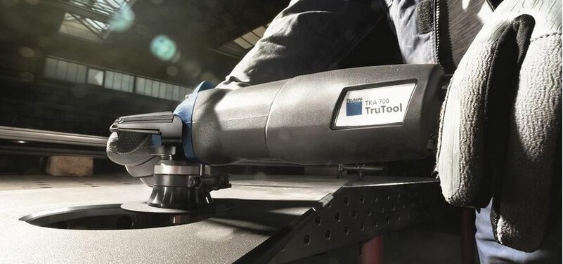 La TruTool TKA 700 è provvista di un potente azionamento a 1700 W che assicura una potenza straordinaria con momenti torcenti alti e una guida stabile e sicura della macchina. Questo utensile vi permette di creare spigoli a vista puliti, tagliare spigoli vivi, creare smussi raggiati di 2, 3 o 4 mm o preparare un giunto di saldatura, Tutto ciò con minimo dispendio di forza, in modo rapido e con diverse angolazioni da 0° a 60°. La regolazione della lunghezza dello smusso si effettua senza utensili e in modo continuo, con estrema precisione e rapidità. Potete quindi produrre smussi di lunghezza fino a 5 mm in acciaio da costruzione, con semplicità e in una sola fase di lavoro. Per uno smusso lungo 7 mm serve una seconda fase operativa. L'impugnatura disposta alla perfezione riduce le vibrazioni, assicura l'ergonomia e una guida stabile della macchina.