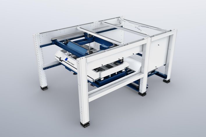 LiftMaster Compact consente di ridurre i tempi di carico e scarico della macchina TruLaser. La sua brevissima durata del ciclo, inferiore a 90 secondi, è ottenuta, tra le altre cose, da un processo di carico e scarico parallelo. In questo modo LiftMaster Compact trasporta i fogli di lamiera grezza fino al dispositivo cambio paletta della macchina laser e al contempo i pezzi già tagliati vengono raccolti da un telaio della griglia separato e sono posti sulla parte superiore del telaio portaventose.