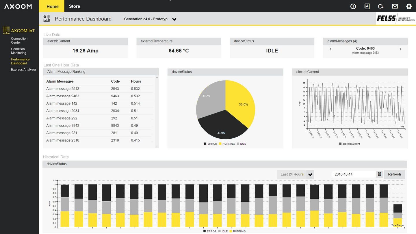 One of the first partners for the new IoT platform offer from AXOOM is Felss Systems GmbH. The IT specialists from AXOOM have developed for Felss a special dashboard for the Felss company’s rotary kneading machine generation e4.0. Felss CEO Thomas Peter: “We were able to present the Performance Dashboard at the Euroblech for the first time. For us, this solution means service in real time with maximum efficiency.”