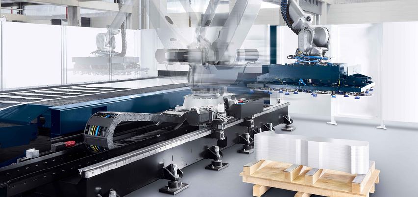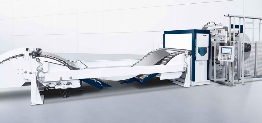 Equipado com um nivelador de precisão ARKU, o sistema de transporte ARKU e a comprovada qualidade TRUMPF combinam-se para formar um sistema completo, altamente automatizado, com muitas vantagens para os clientes. Juntamente com SIEMENS, foi desenvolvido um sistema de controle inovador - desde o desdobramento da bobina, endireitamento, corte a laser até a remoção de componentes totalmente integrada, baseada em robôs. A programação do sistema completo até a retirada pelo robô é realizada através do TruTops Boost.