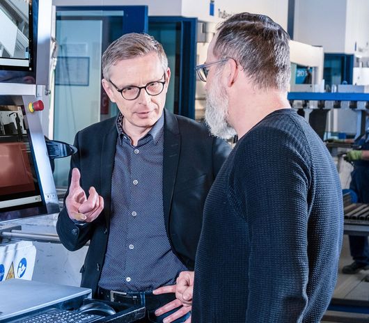 La Zerbst, diferite componente și dimensiuni de lot parcurg trasee perfect cronometrate în secția de producție. Prima operațiune de îndoire trebuie să fie perfectă, deoarece se produce doar numărul necesar de piese. Joachim Gerland, directorul EMAG Zerbst Maschinenfabrik GmbH, explică: „Dacă o piesă finită este îndoită incorect pe mașina de îndoit, trebuie să o reproducem în cel mai scurt timp și rapid printr-un proces suplimentar. Sunt generate costuri suplimentare atunci când angajații noștri de la următoarele locuri de muncă de sudare sunt primii care observă că, de exemplu, unghiul nu este corect sau o piesă a fost îndoită în direcția greșită.”