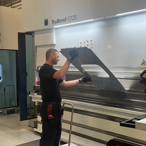 ”Fördelningen ligger idag på ca 65 procent tillverkning av egna produkter och 35 procent legotillverkning. Ett mål vi har är att växa på legosidan, vilket vi ser stora möjligheter till genom ökad effektivisering”, säger Jonas Björk, inköp- och logistikansvarig. I produktionen finns ett antal processteg – bland annat laserskärning, kantpressning, svets, slipning och betning. Här sker även skärande bearbetning samt montering.