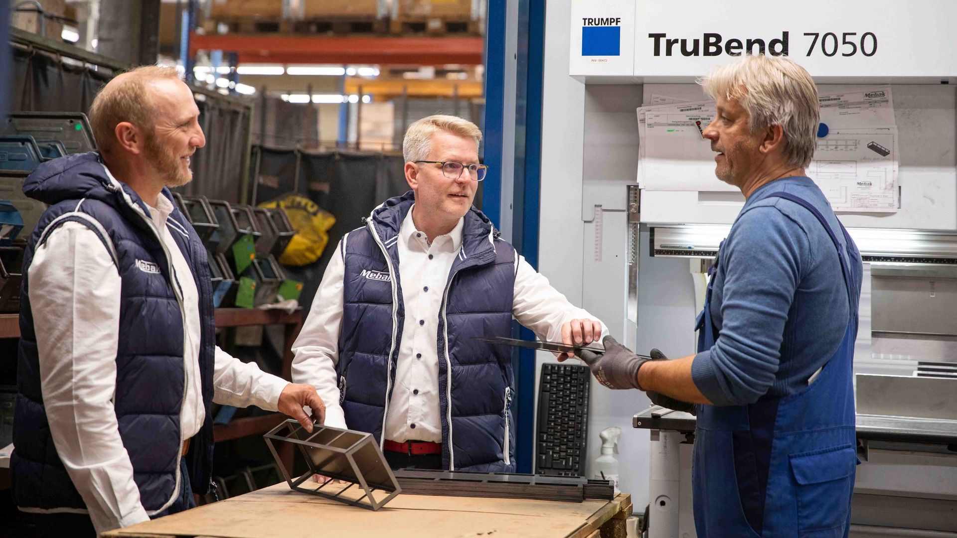 Den nya kompakta materialbufferten från TRUMPF är den optimala automatiseringslösningen när det är ont om plats. “Materialbufferten försörjer vår TruLaser 1030 fiber. Den är så snabb att utan automatiseringen skulle vi ha haft problem med att försörja den med material utan att stoppa den“, säger André Barten. Materialbuffertens fyra lagerytor passar optimalt till produktionsprocessen hos Mebak. “De båda lagerytorna i mitten fyller vi med de standardplåtar som vi behöver oftast. Längst ner lagrar vi material för dagsaktuella jobb och längst upp hamnar de färdiga detaljerna eftersom det är lättast att plocka dem därifrån“, förklarar Ronny Freitag. Materialbufferten styrs över produktionsplanen. Driftschefen anger endast ordningsföljden för genomarbetningen av jobb och materialbufferten fylls sedan på enligt detta. “Allt efter jobbens omfattning och typ kör TruLaser 1030 fiber sedan obemannat i upp till sex timmar“, säger Freitag. “Det har fördelen att våra medarbetare kan manövrera två maskiner samtidigt.“ När det ibland finns utrymme kan färdiga detaljer enkelt plockas från extrapaletten eller nytt material förberedas för materialbufferten på en annan extrapall – tidsparallellt och komplett flexibelt.