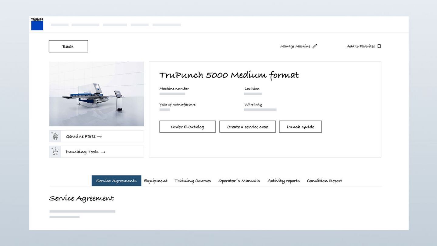 - Depending on the country, the display of the individual functions may vary. Please contact your MyTRUMPF support team if you are missing the functions specified here. We will then check straight away whether we can provide you with them.