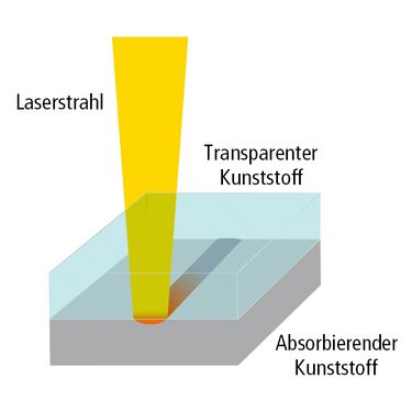 Laser übernehmen auch hier zunehmend die Klebevorbereitung. Außerdem etabliert sich aktuell das Laserdurchstrahlschweißen etwa für Gehäuse elektronischer Bauteile. Dabei durchläuft der Strahl den oberen Fügepartner, der aus einem für seine Wellenlänge transparenten Kunststoff gefertigt ist, und schmilzt den Werkstoff des unteren auf. Die thermische Belastung ist minimal und die Oberfläche bleibt unberührt.