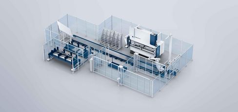 Med roboten på en flyttbar skena bockar TruBend 8000 helautomatiskt åtta meter långa plåtar med maximalt 220 kilo vikt. Konstruktionen orienterar sig efter dina behov – om så önskas inklusive lageranslutning, centreringsstation, gripdons- und verktygsväxling samt omgreppningsstation och andra plåtbearbetningsprocesser som exempelvis fogning eller djupdragning. Den övergripande lösningen kan programmeras offline.