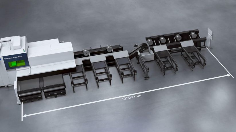 TruLaser Tube 7000 可在最长 12.5 m 的上料长度范围内加工管材并下料。通过优化排样,可显著提高原材料利用率, 从而减少下脚料并为您降低材料成本。即使是最大上料长度的成品也可实现稳妥下料。